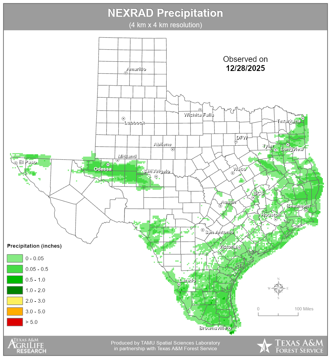 Precipitation data from NEXRAD radar is obtained daily through a memorandum of understanding signed by the NWS-RFC and Texas AgriLife Research. This data is currently being used by the SSL to maintain existing products, as well as develop runoff and stream flow maps.